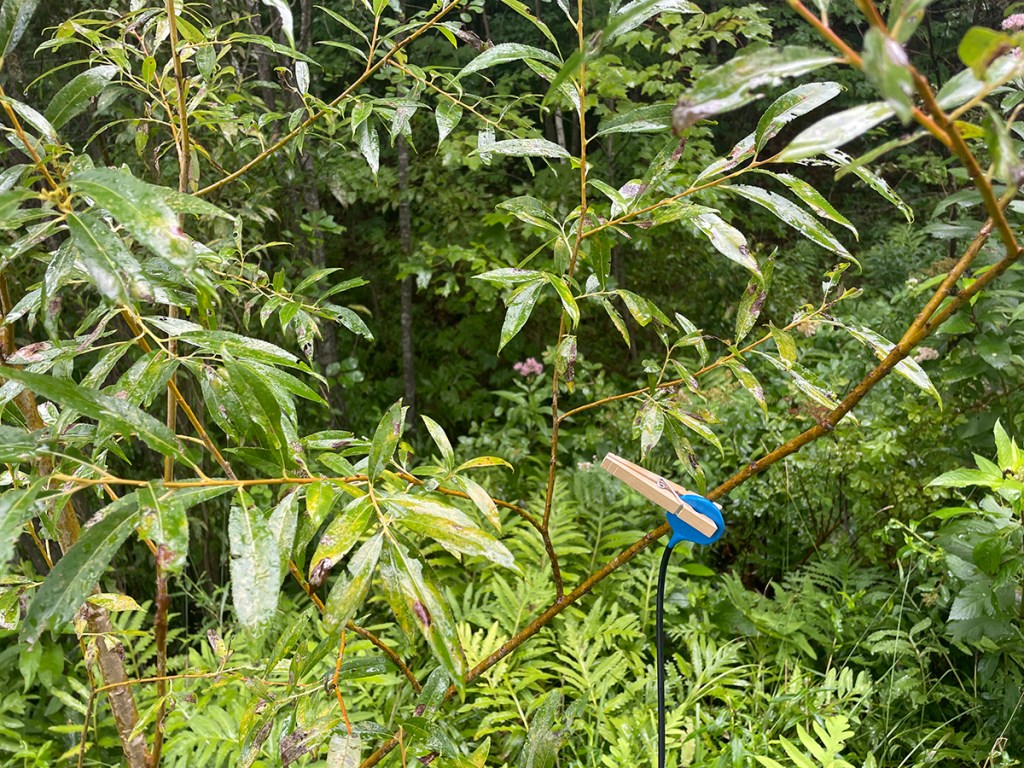These recordings of the same Shining Willow tree were made by Kristine Diekman during summer in the USA in July 2024, at InSitu Polyculture Commons in Saxtons River, Vermont, USA. Each recording was made on a different day with a contact microphone, in order the listen to what the tree “hears”. Each revealed the inner life of the tree, with especially remarkable sounds of the interior of the tree limbs, branches and trunks on a still day revealing the internal sounds of insects communicating through the substrate.