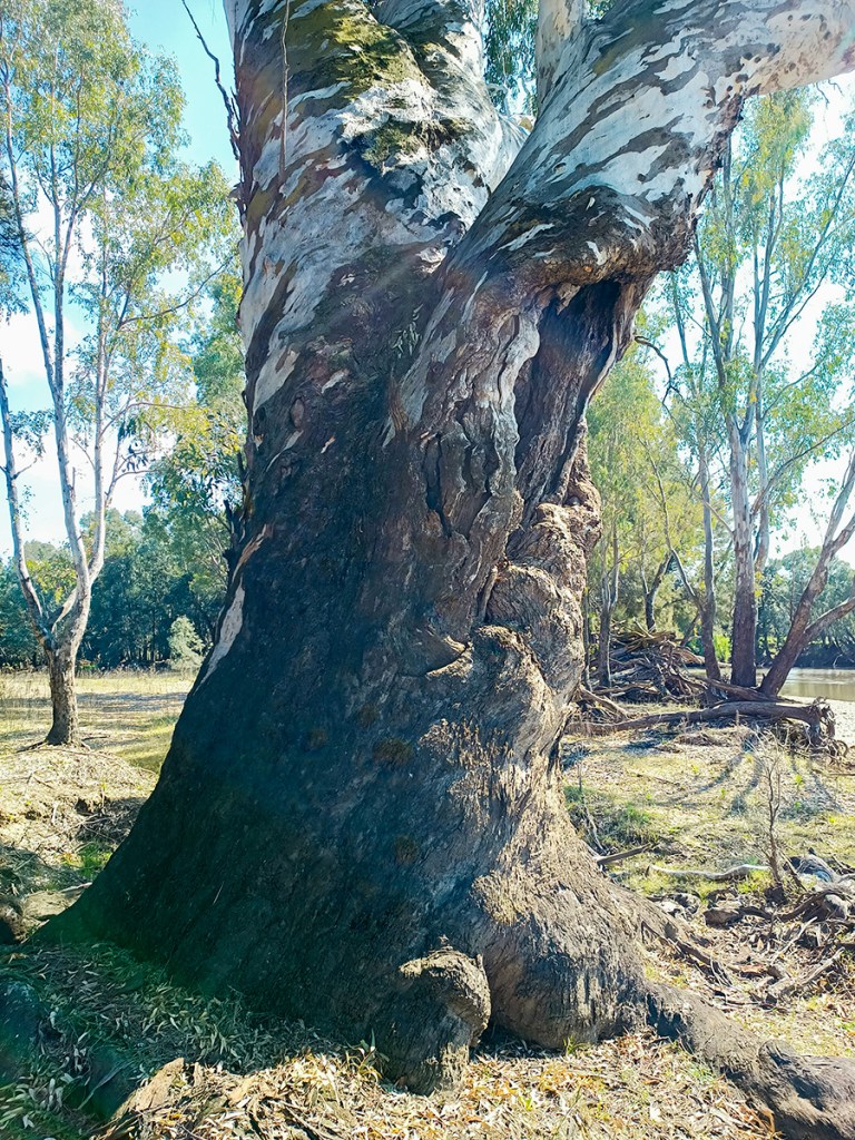 Wind and River Red Gum branches and roots in conversation with the earth