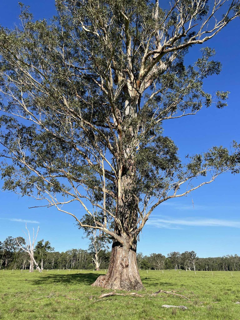 Eucalyptus tereticornis (Forest red gum or Blue gum), is a tall, fast-growing eucalypt native to eastern Australia and parts of southern New Guinea. It thrives in a range of habitats from coastal plains to inland riverbanks, stretching from southern Victoria through New South Wales and Queensland, and into Papua New Guinea. This species typically reaches heights of 20–50 metres, with a straight, erect trunk that can exceed 1.5 metres in diameter. It forms a lignotuber, allowing it to regenerate after fire. The bark is smooth and sheds in irregular flakes, revealing a mottled palette of white, grey, and bluish tones, though rough bark may persist at the base. The adult leaves are narrow, lance-shaped, and glossy green on both sides, often drooping on slender petioles. Flower buds appear in clusters of seven to eleven, producing white flowers that are rich in nectar and highly attractive to pollinators. The fruit is a small, woody, hemispherical capsule. Ecologically, E. tereticornis plays a vital role in supporting biodiversity, offering habitat and food for birds, insects, and mammals. Its nectar is a key resource for honey production, and its dense wood is valued for fuel, construction, and pulp. The species is also used in land rehabilitation and erosion control due to its robust root system and tolerance of poor soils. Notably, its rapid growth and resilience make it a cornerstone species in reforestation and carbon sequestration efforts.